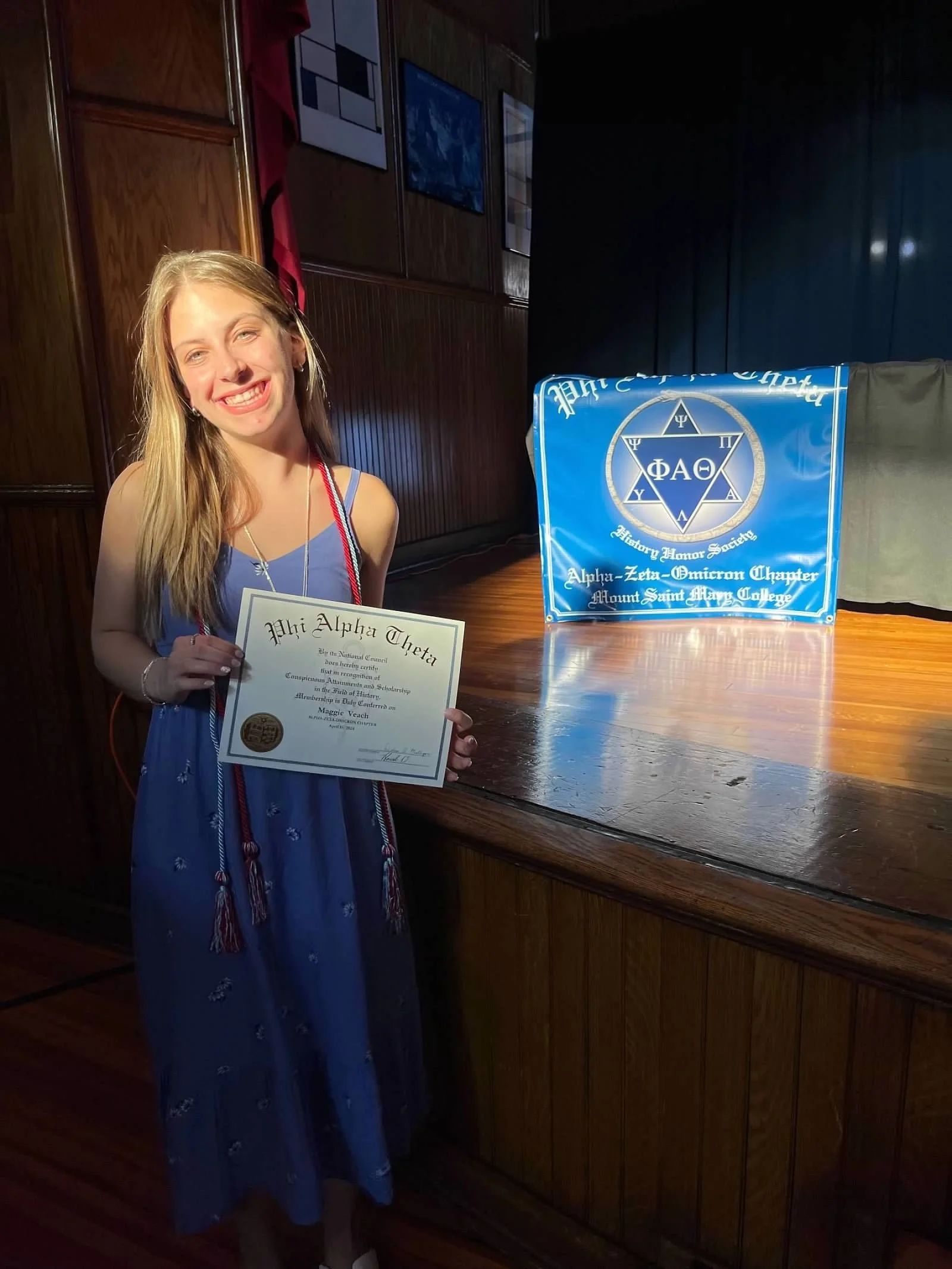 Jacqueline (Chatlos) Veach and husband, Ron, are proud that their daughter, Maggie Elizabeth Veach '26, is Vice President of Kappa Delta Pi, a 2024 Member of Phi Alpha Theta, and just received honors in Psychology this past semester. The family is proudly looking forward to her graduation from the Mount next Spring.